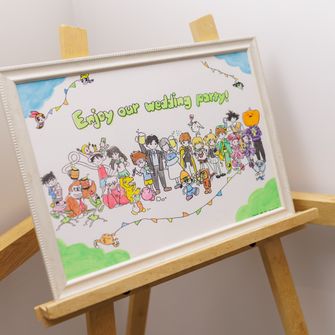 夫婦共に大好きなaikoの同名曲から取り、披露宴のオープニング映像やバンド演奏の最後の曲にも使用しました。他にも、ペーパーアイテムやケーキなど、さまざまなところにメロンソーダの要素をちりばめています。