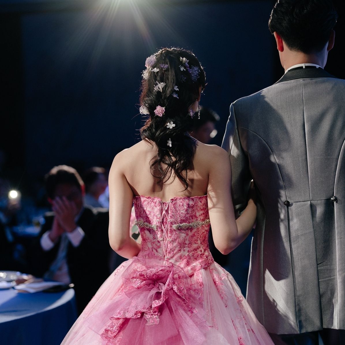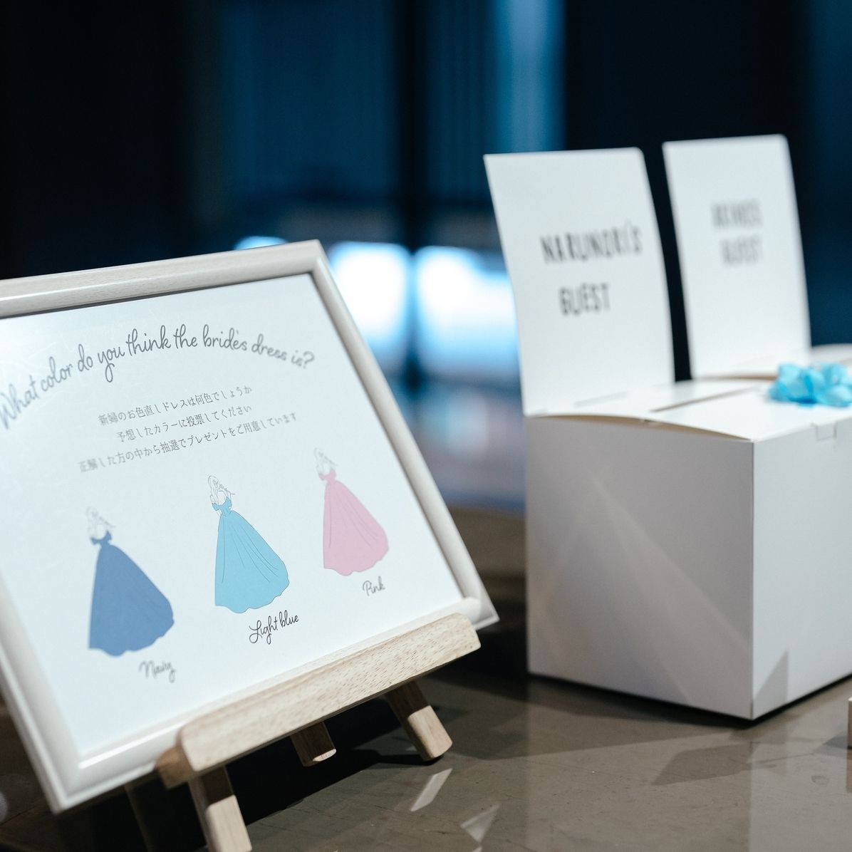 非日常感が欲しかったので、小物や装花は透明感を意識したり、洋画に使用されている音楽をたくさん使用しました。