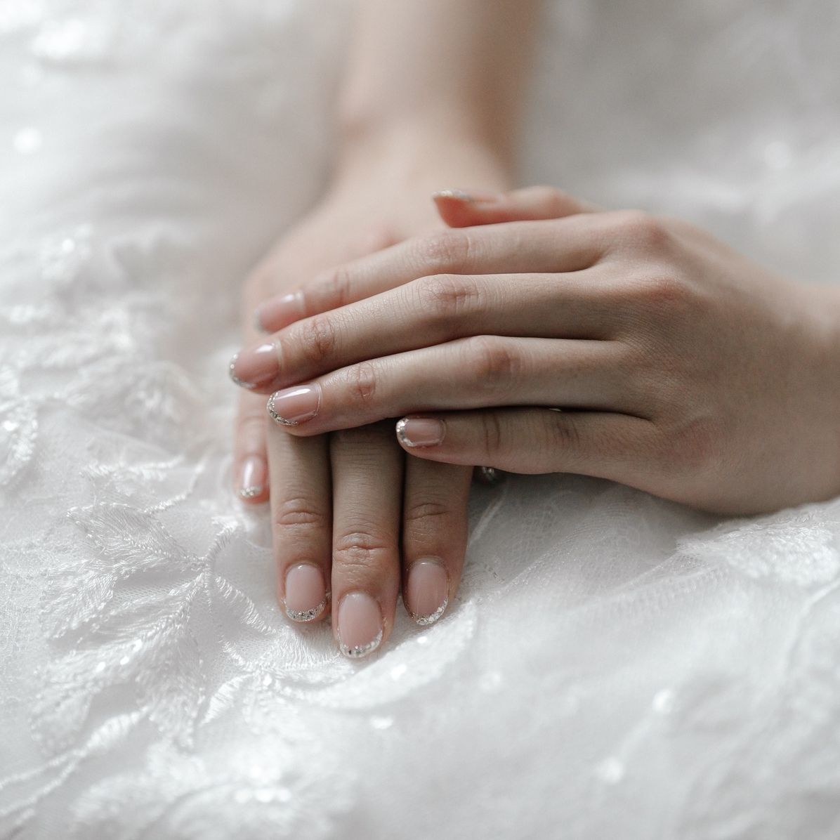 上品さと透明感、華やかさを出したかったので、ガラスフレンチにしました。また披露宴でピアノを弾くため、できる限り短めでお願いしました。