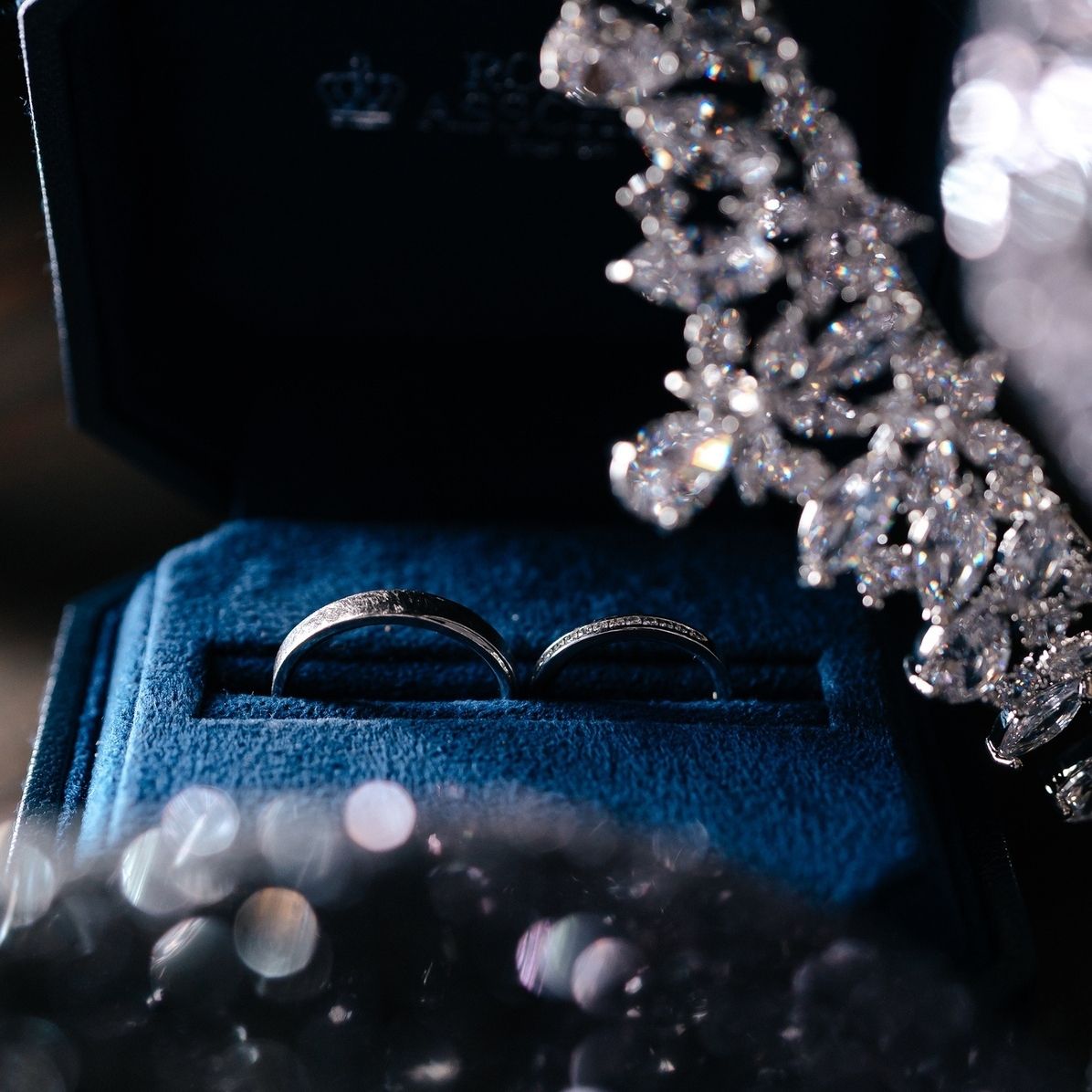 婚約指輪に合うように、結婚指輪はハーフエタニティがいいと思っていたので、夫婦でブランドのみ統一してデザインはそれぞれ好きなものを選びました。