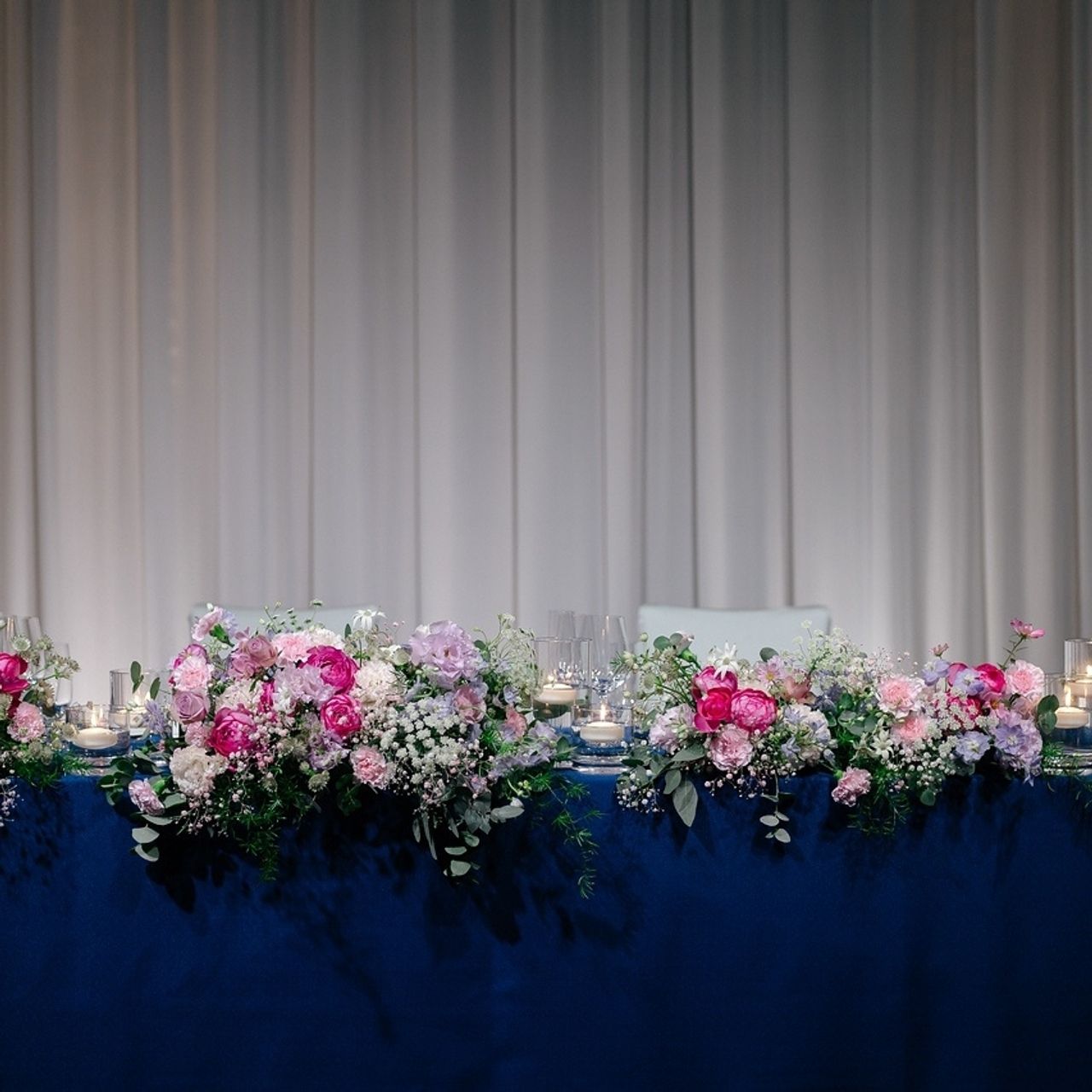 実際の装花を見た時の感動は想像以上で、結婚式で最もお気に入りなポイントのひとつです。ライトが当たった時の美しさが本当に素晴らしく、ゲストにも装花を褒めていただくことが多かったです。