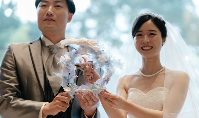 結婚式のテーマは「森の中で見つけた妖精のパーティ」のような雰囲気をイメージしていました。開放感と非日常感を第一に式場を選んでいます。