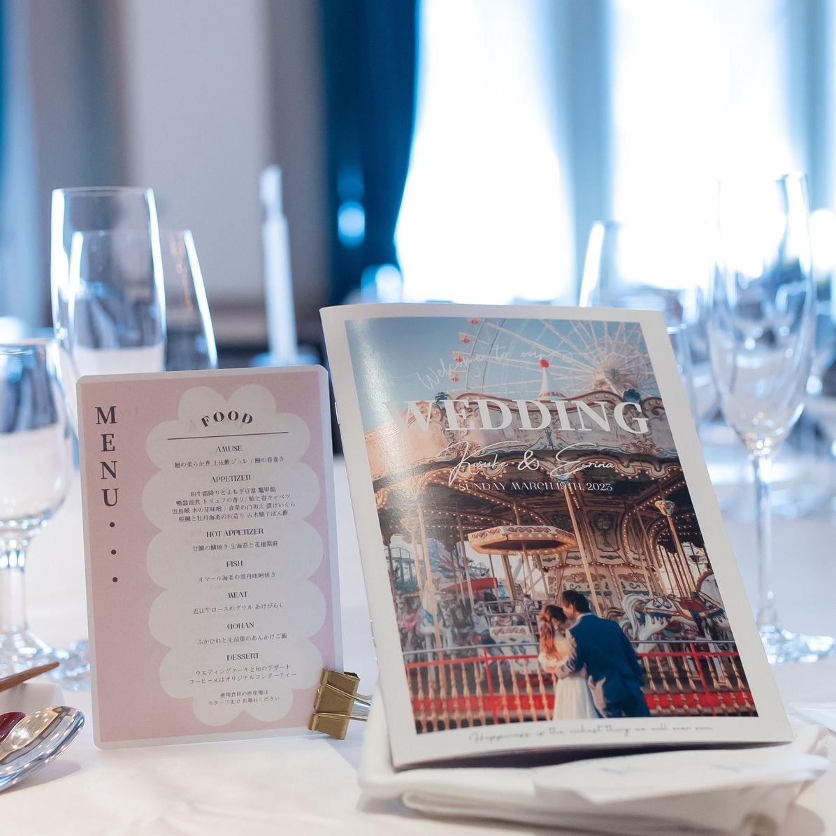 自分好みのものを作りたいと思い、招待状やプロフィールブックなどのペーパーアイテムやムービーなどは手作りしました!