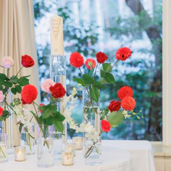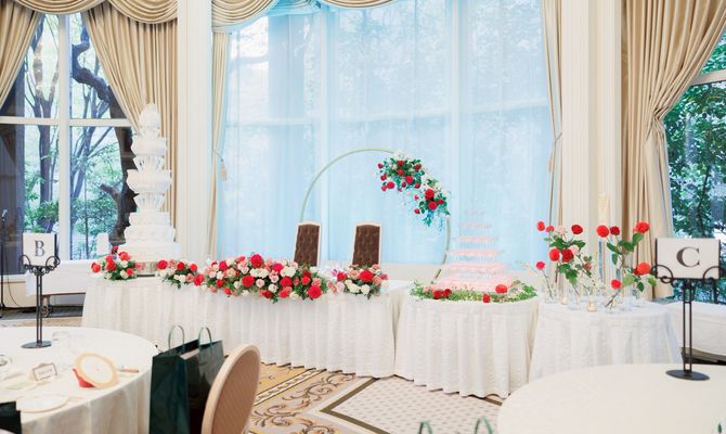 結婚式のテーマは赤いバラです!バラが好きなのでテーブルコーディネートやブーケやプチギフトなどをバラにしています!リーガロイヤルホテル大阪 ヴィニェット コレクションの決め手はチャペルとダイヤモンドルームがとても好みだったことです。また、両家の親族が住んでいる地域の間にあるホテルだったので決定しました。