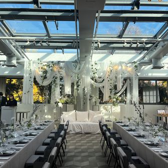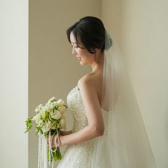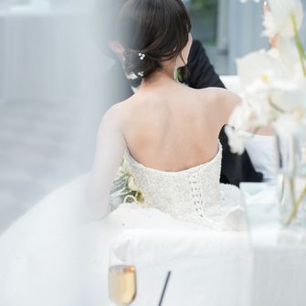 ペーパーアイテムはすべてDIYで制作し、シンプルで洗練された装飾に統一。