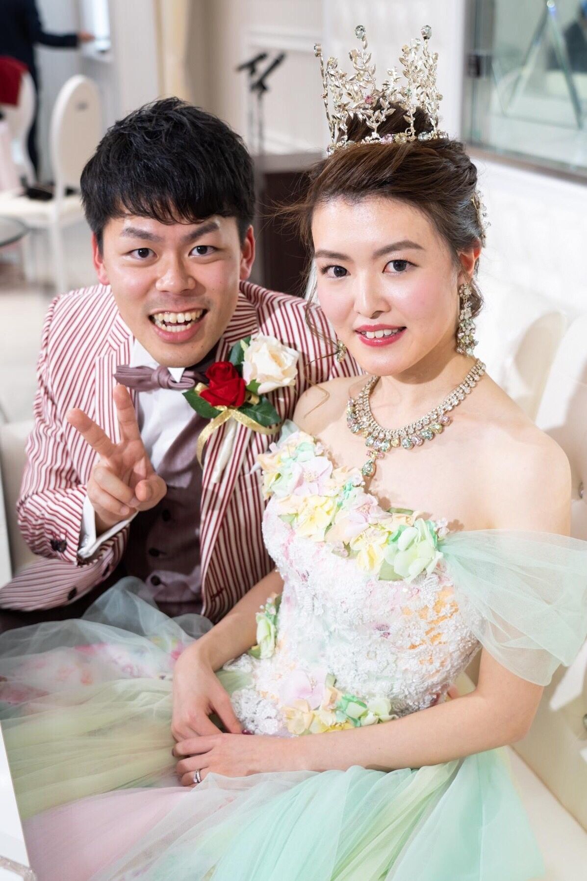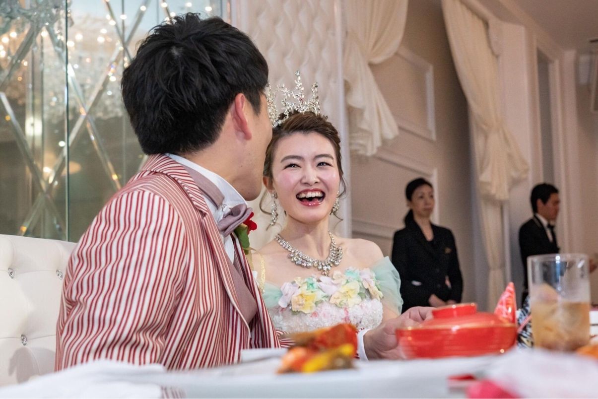・ウェディングドレスでは、大きめのティアラをつけました。ミスユニバースのようなイメージのティアラにしました!