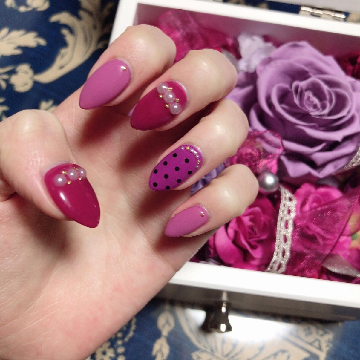 ・濃いピンク、パープルと、大好きな色でまとめました。