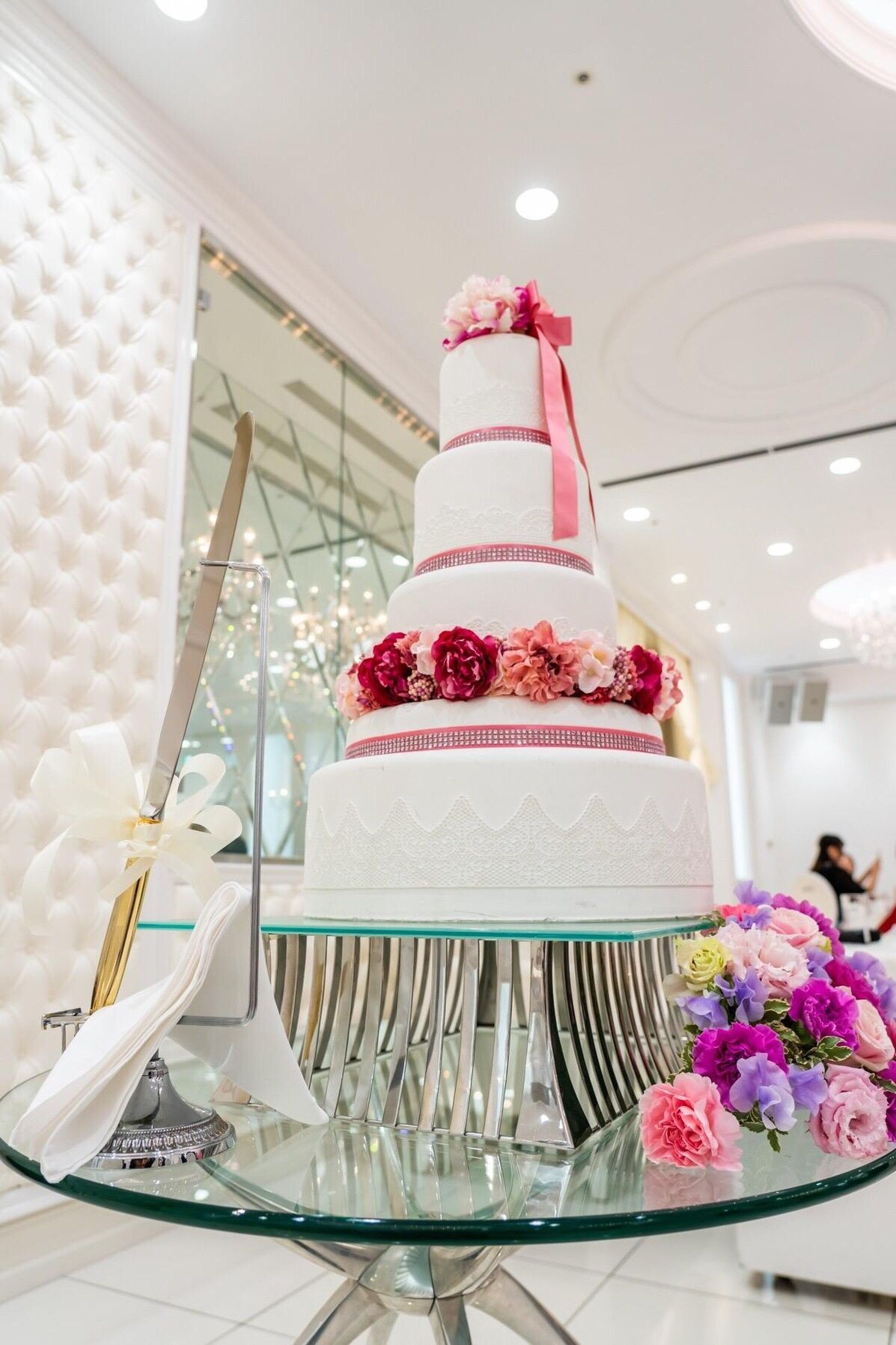 会場のセットになっていた、イミテーションケーキを使用しました!