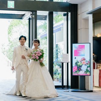 結婚式場は、挙式と披露宴の間にウェルカムパーティーがあるところを中心に探していました。また、なるべく天候に左右されず、結婚式後に何度でも訪れることができる場所がいいと思っていたので、レストランなどが併設されているところも重視しました。