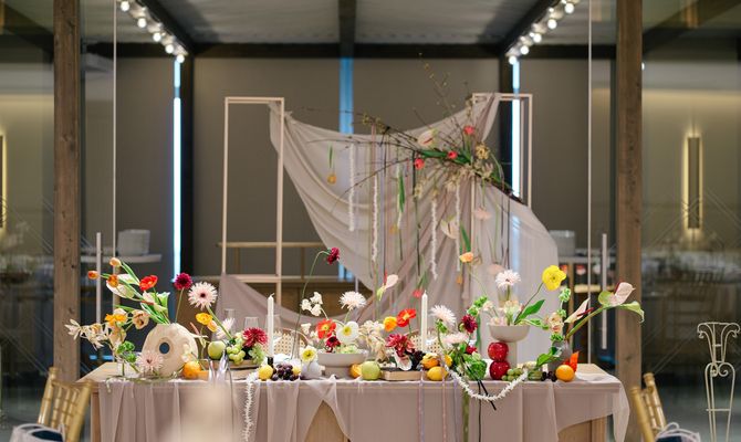 とにかくおしゃれな雰囲気の式にしたかったので、ほとんどのものをDIYしました。大人っぽく洗練されている感じを目指し、シンプルな中にこだわりをちりばめています。