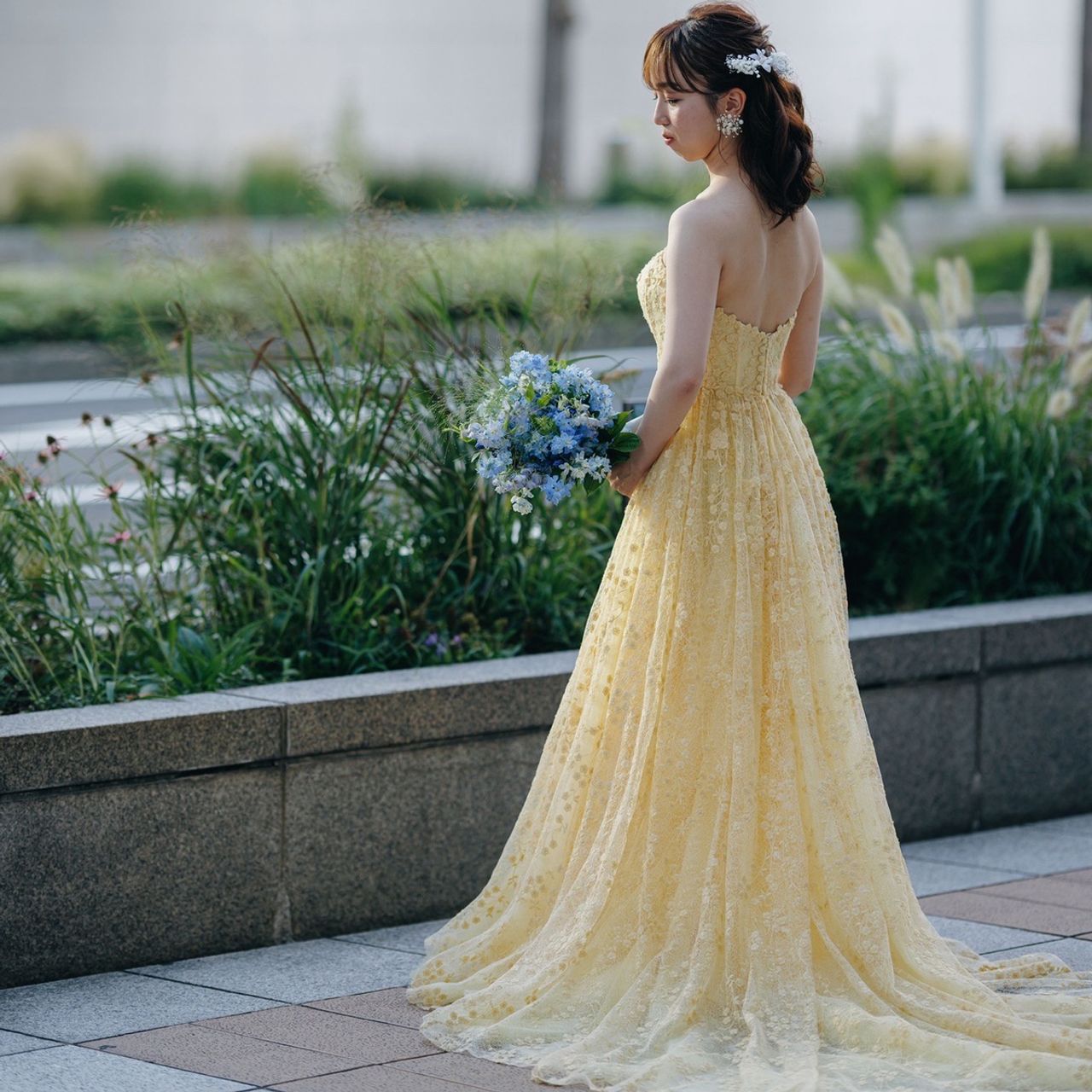大好きな黄色の中でも好みの色合いかつ、小さい花の刺繍がとても可愛いドレスです。