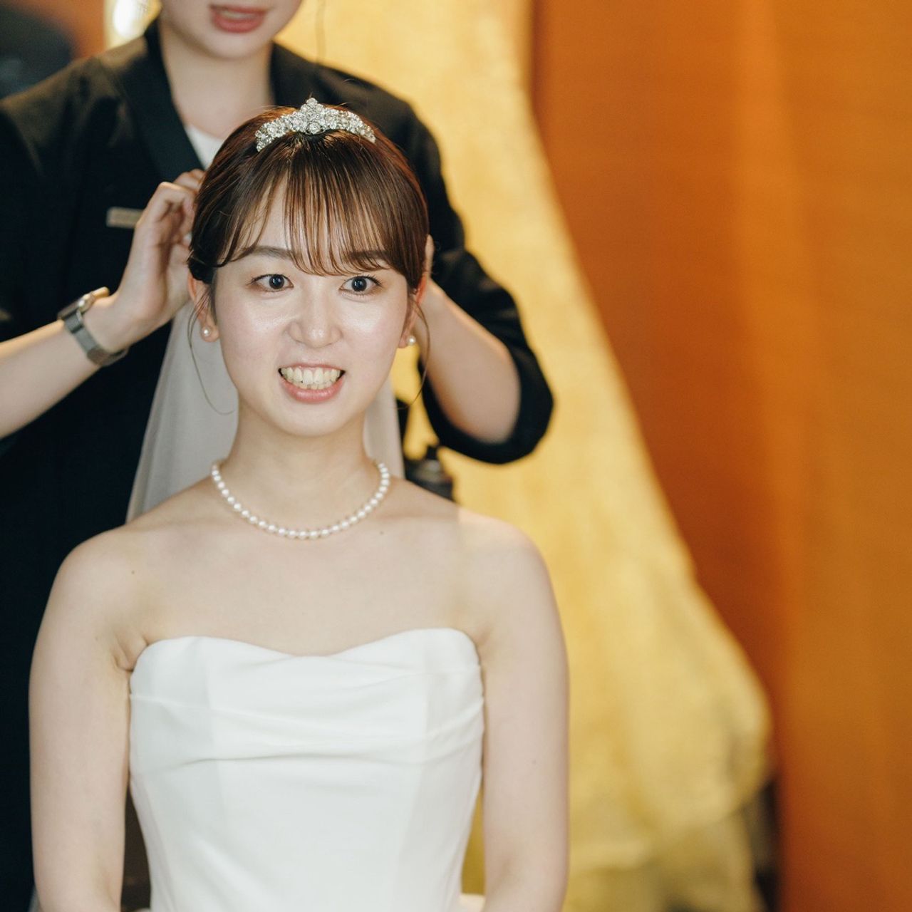 ウェディングドレスでは小さい頃から憧れだったティアラを着けました。