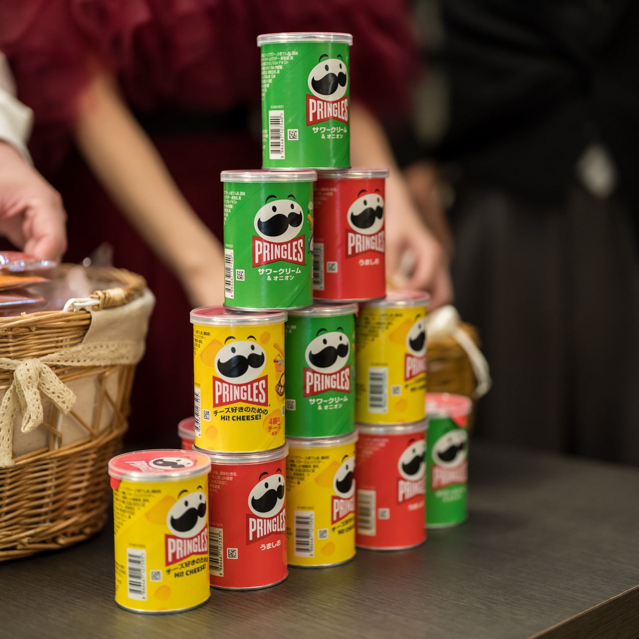 最後まで楽しんでもらえるように4種類のプチギフトを用意しました。しょっぱいもの、甘いもの、ドリンクと欲しいものが一つはあるように組み合わせました。