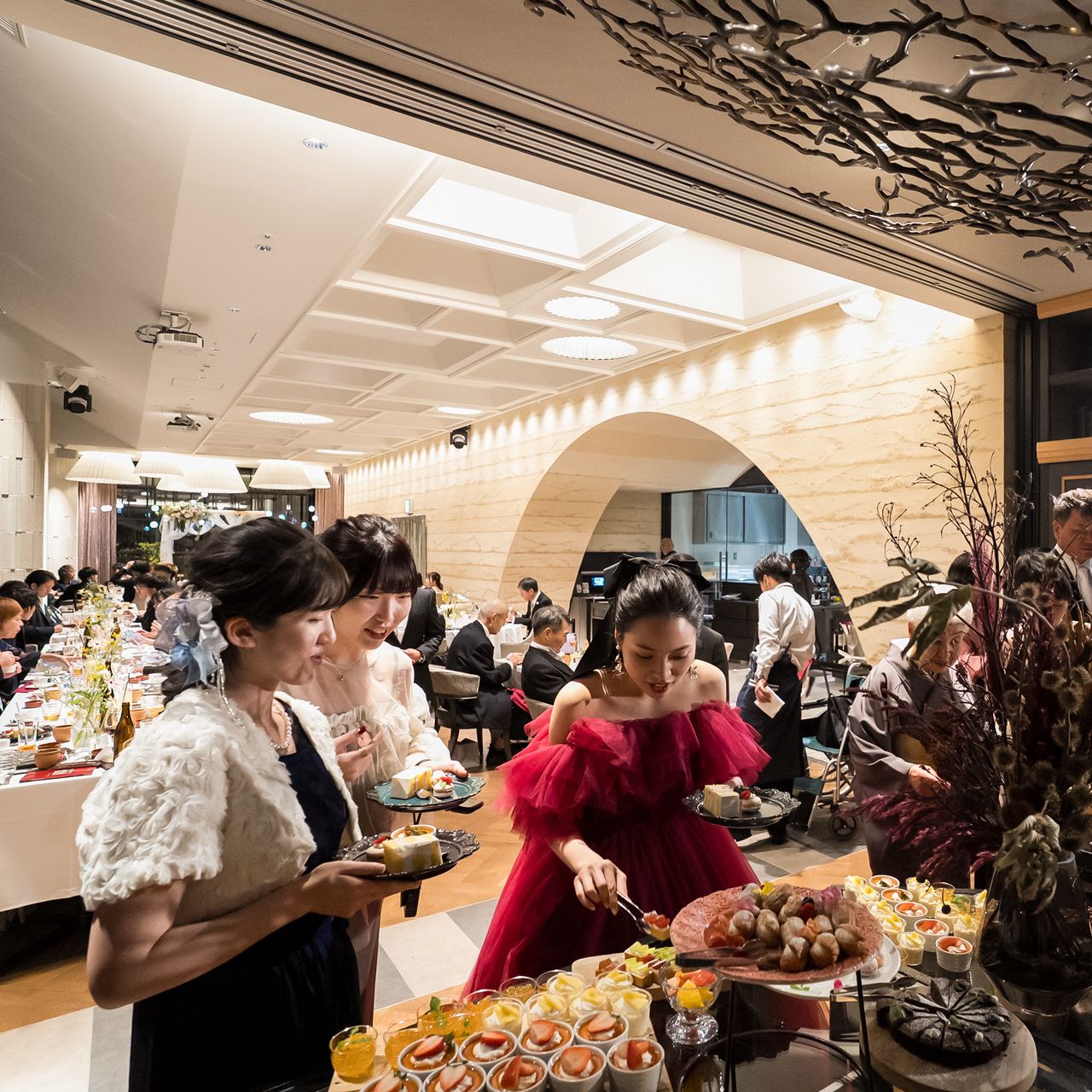 とにかくゲストと近い距離で楽しみたかったので、ゲームなどの時間は設けず、ほとんどフリーで過ごしました。デザートバイキングを友人と楽しんだり、新郎は友人とタバコを吸いながらお喋りしたりとお互い別行動でしたが、お互いのゲストと有意義な時間を過ごせたので、フリーな時間にした事は1番よかったと思います。