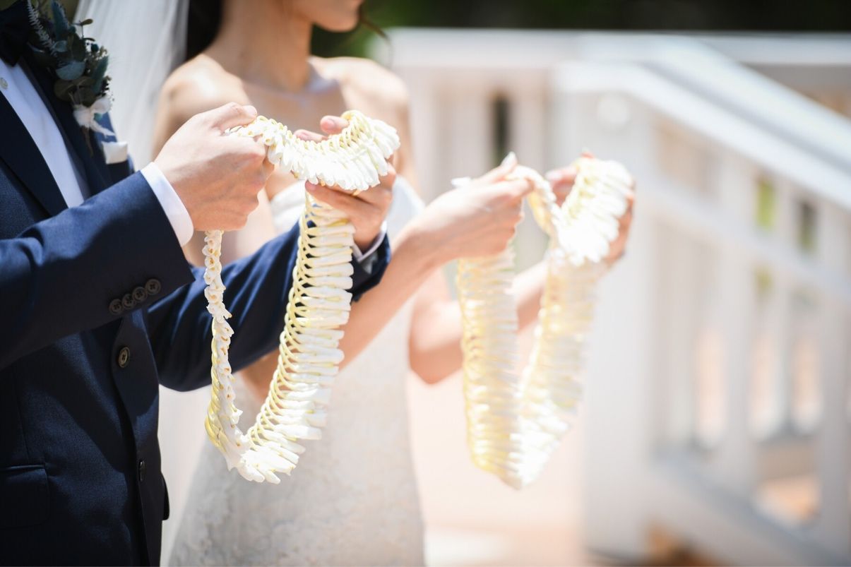 両親に「今まで大切に育ててくれてありがとう」と感謝の気持ちを伝えながら、レイをプレゼントするセレモニーを行いました。