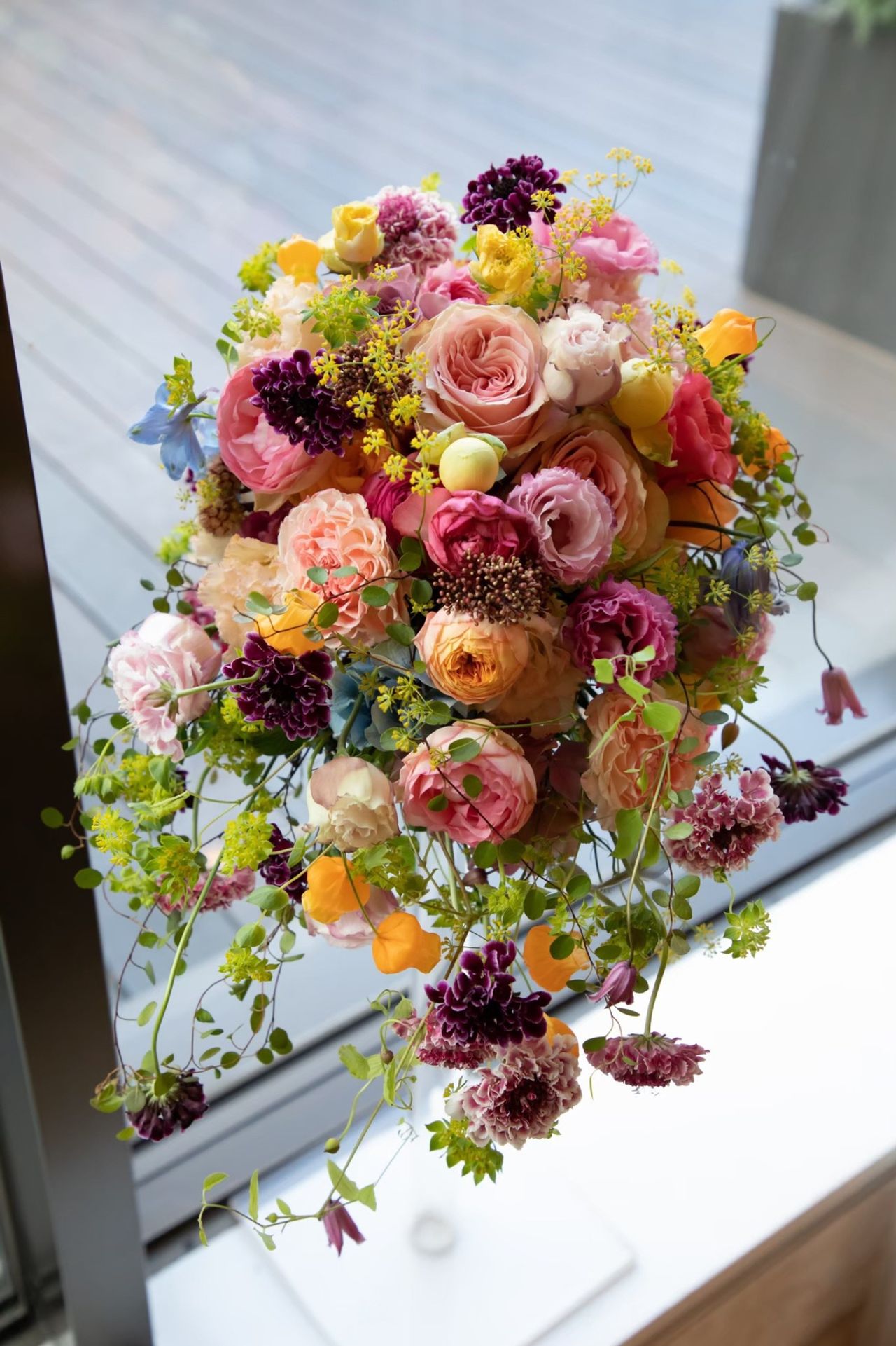 素敵なブーケや、装花をつくってくださいました!挙式の生花ブーケは、カラフルにしてもらいました!また親友の結婚が決まっていたので、ブーケトスは行わず、その友達にプレゼントしました!