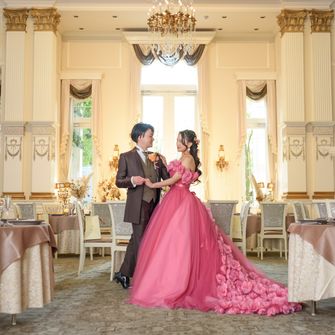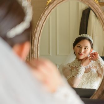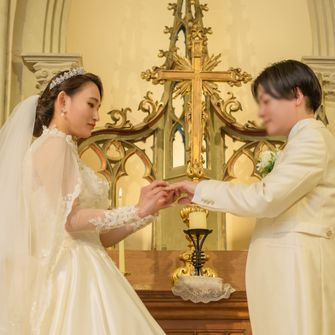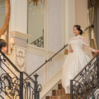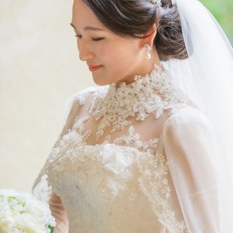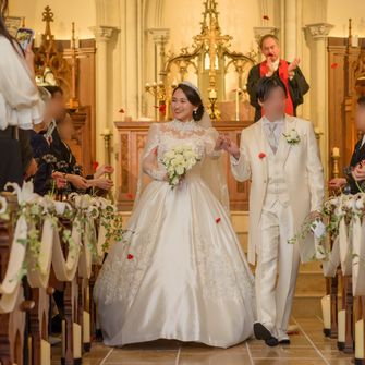 ハートコート横浜は、一歩踏み込むと別世界の様な世界観がしっかりと作り込まれており、非日常的なところがとても気に入りました。ステンドグラスが綺麗な英国風なチャペルということもあり、式はとにかくクラシカルに、ロイヤルウェディングを目指しています。チャペルそのものがクラシカルなので、ドレスやアクセサリーも統一感が出るようにしました。