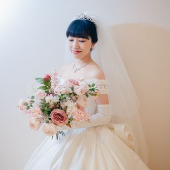 ウェルカムスペースや当日のブーケ、ウェディングケーキにもその作品をモチーフにしたものを作ってもらい、煌めきに溢れた結婚式になったと思います!