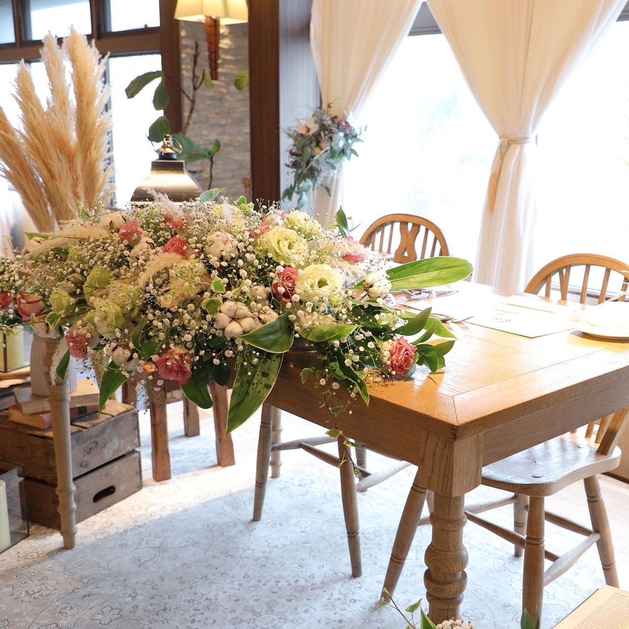 ドライフラワーはカラードレスに合わせてブラウン系とピンク系にしました。ドレスとも合っていて可愛かったです。