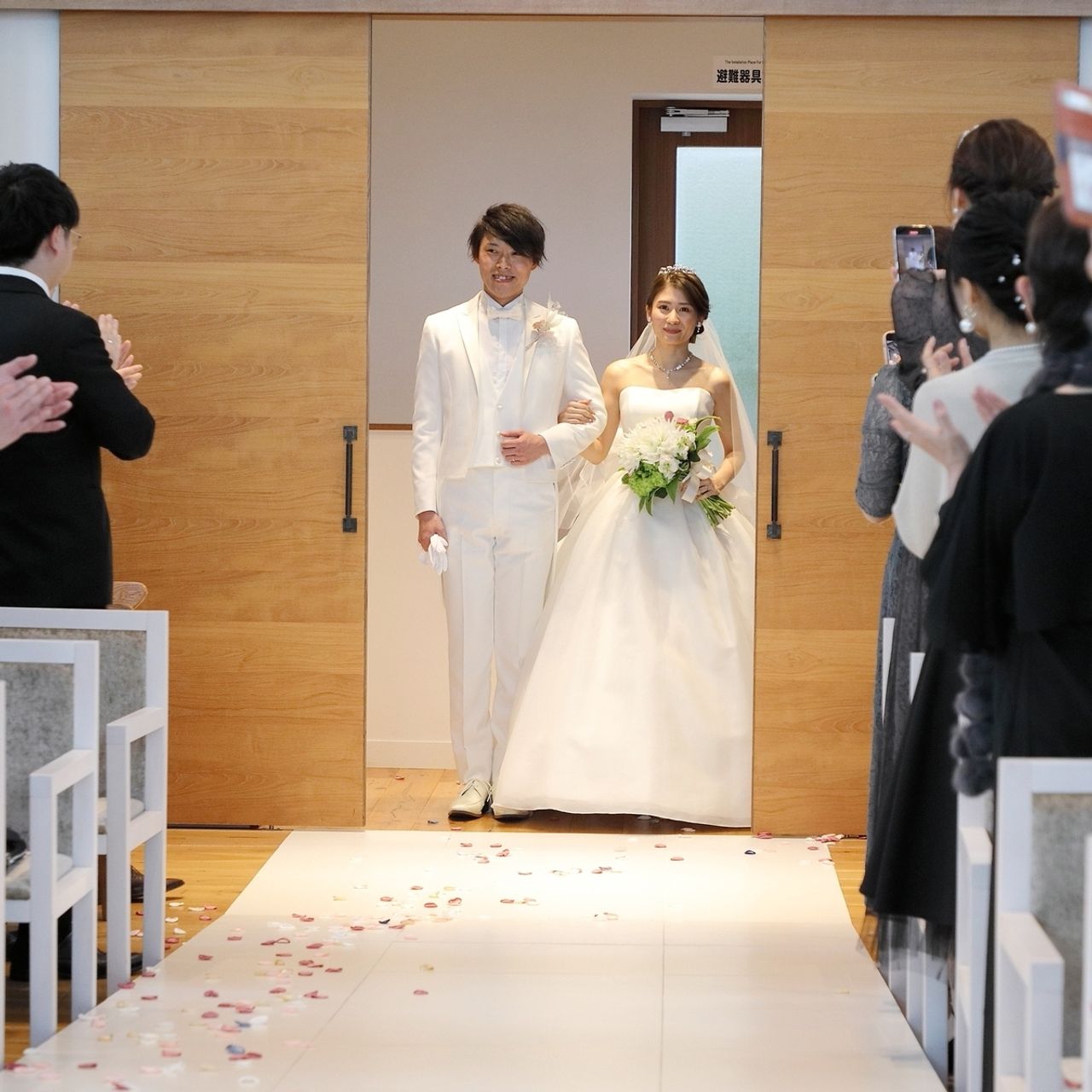 挙式で扉を開けた時と最後のエンドロールを観た時です。