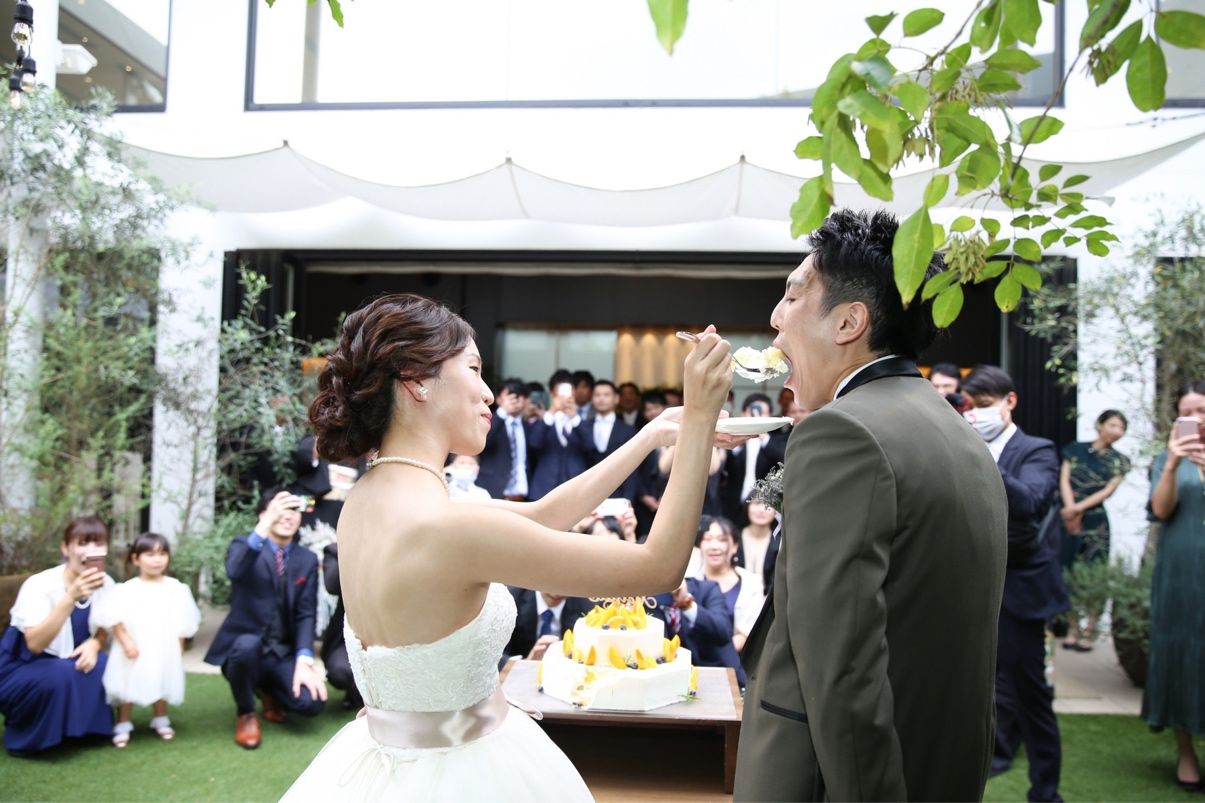 会場内はとても広く、ゲスト同士もほどよい間隔を取れるのでドレスを着ていても間を通りやすく、動線がしっかり確保できるのが良かったです。ガーデン併設なので、ビュッフェイベントや、入場などあらゆるシーンで緑をバックに活用できるのが最大の魅力でした。