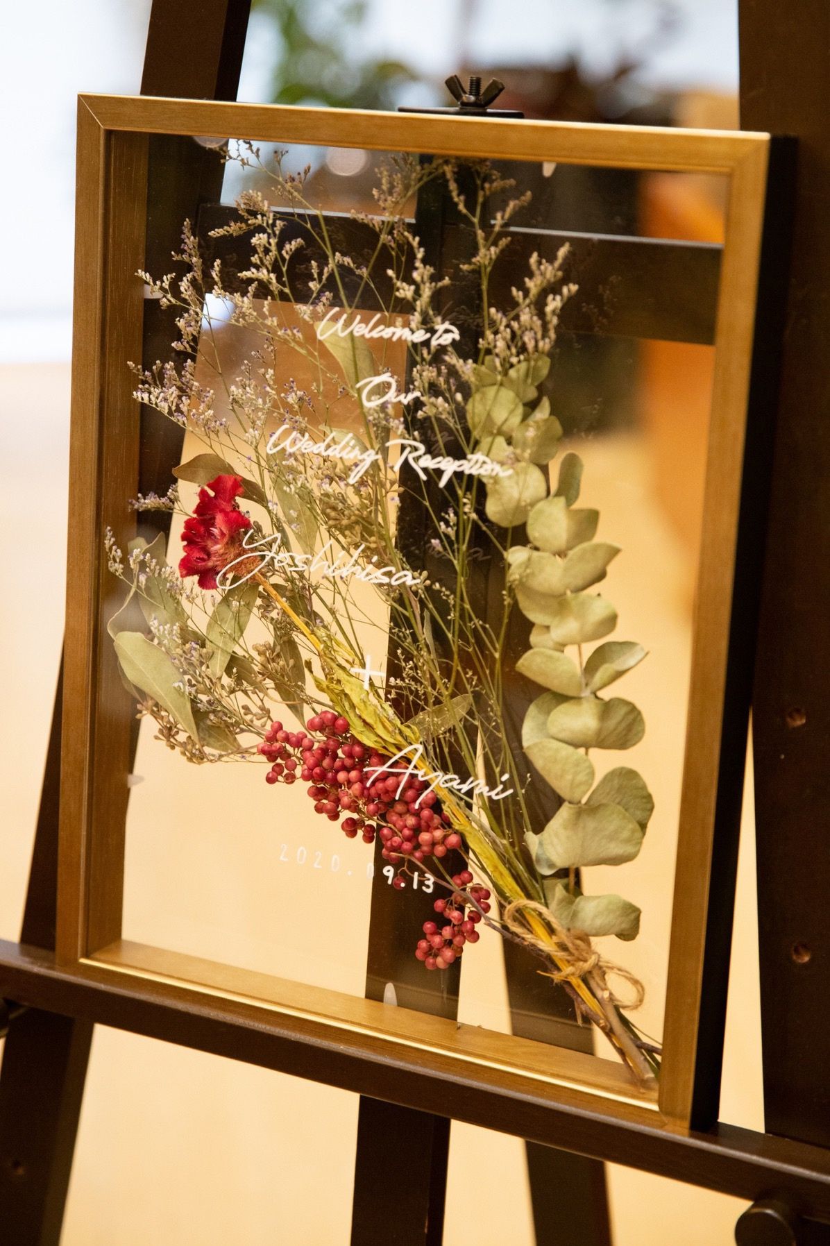 席札や席次表などのペーパー小物は手作り。ウェルカムスペースの装飾品なども、できるだけ自作して飾りました。