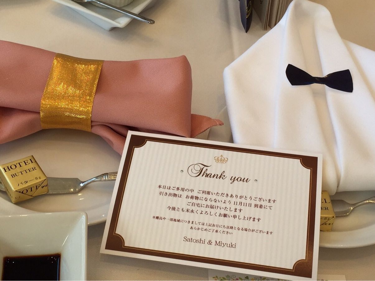 ゲストにもわかるように、ヒキタクカードを席札と一緒においてもらいました♡