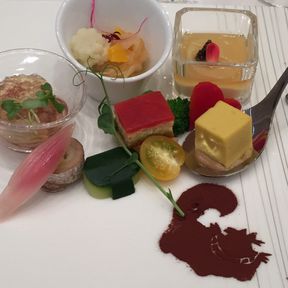 お料理にもオリジナリティを出したかったのでプランナーさんと相談してアリス風のオードブルや隠れミッキーをいれてもらいました♡