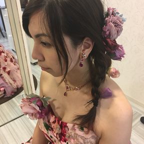 前撮りで美容師さんと相談した結果、お花のヘッドピースとピンクチュールになりました笑