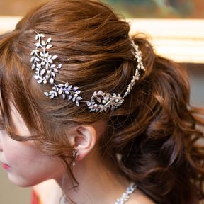 ・カラードレスには同じく、MIKIMOTOのヘッドドレスを合わせました。会場のライトに照らされたときのダイヤモンドの輝き方が、とても綺麗でした。