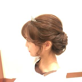 ・ウェディングドレスはクラシックなイメージが良かったので、ティアラの似合うアップスタイルにしていただきました。