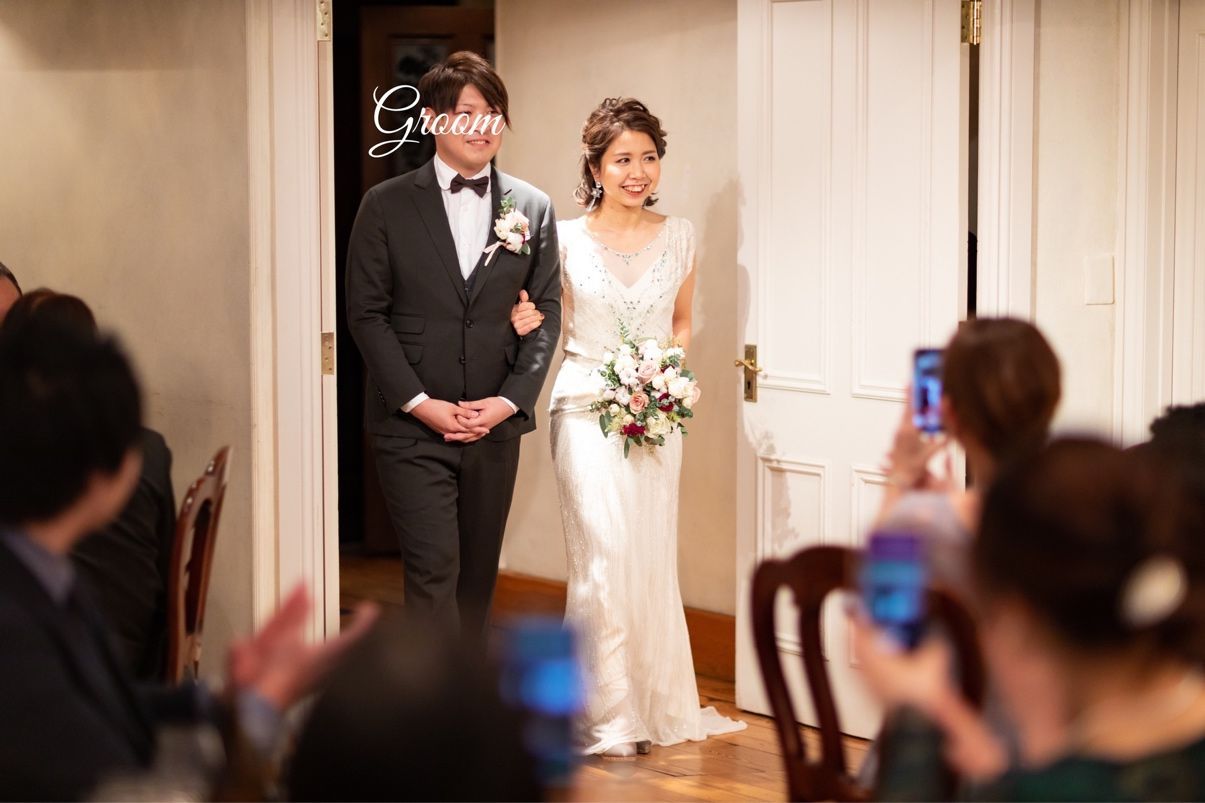 国内披露宴では、テーマに関連した選曲をしたり、モチーフをアクセサリーや装飾にさりげなく入れて会場の世界観とも合うようにしました*