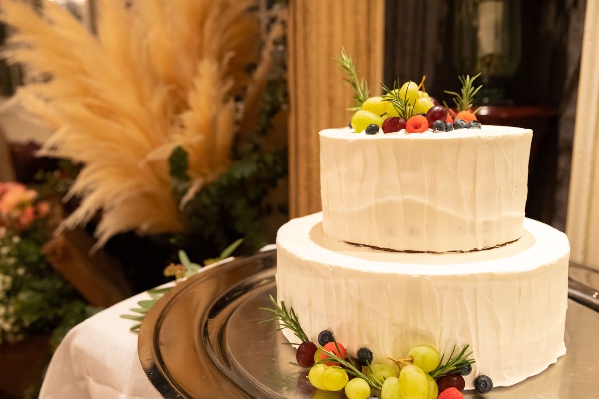 外見は白いケーキで、フルーツはぶどうなどで大人っぽくしてもらいました。