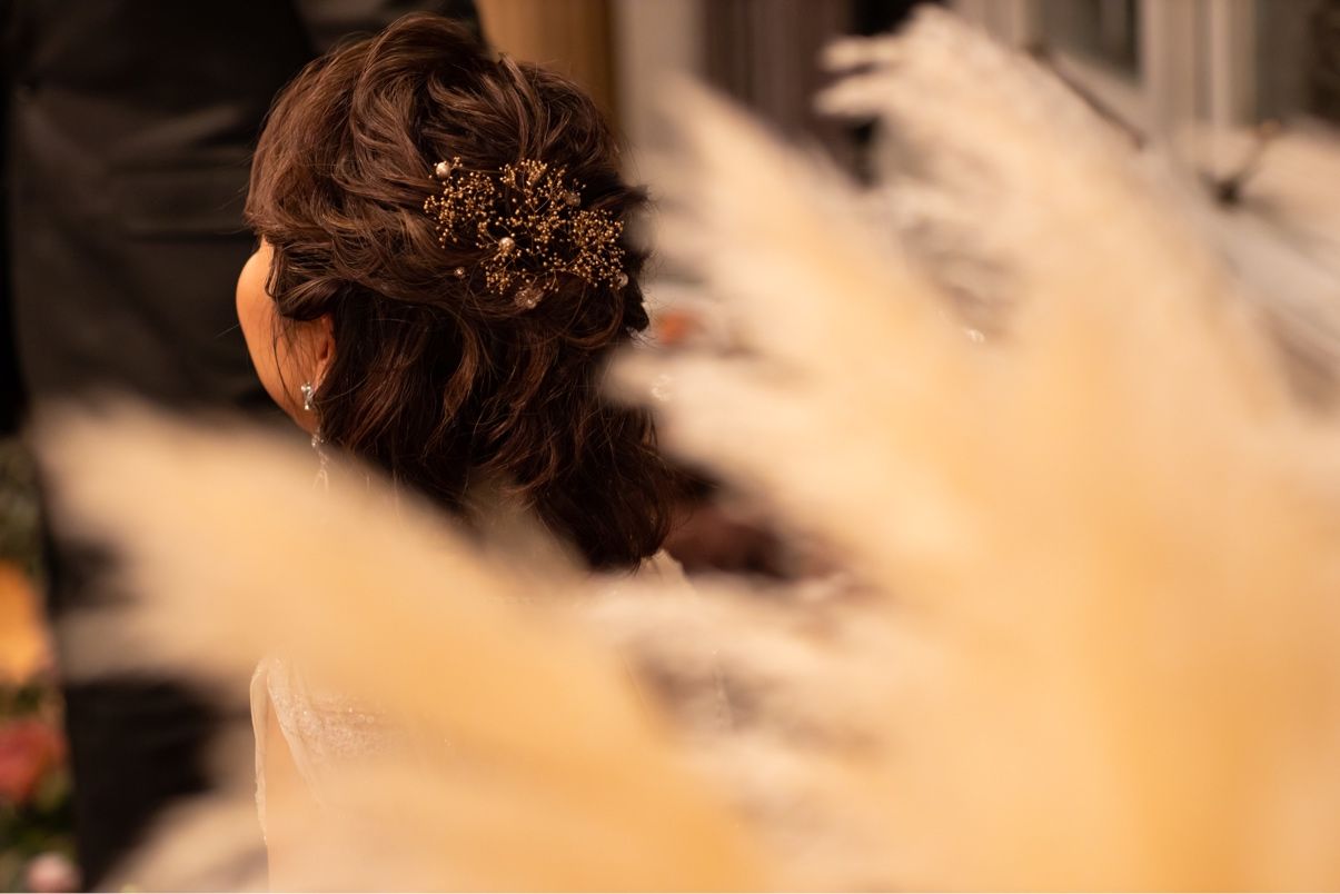 2着目:ハンドメイドショップで購入した、ドライのゴールドのかすみ草とビジューのヘアピンです。