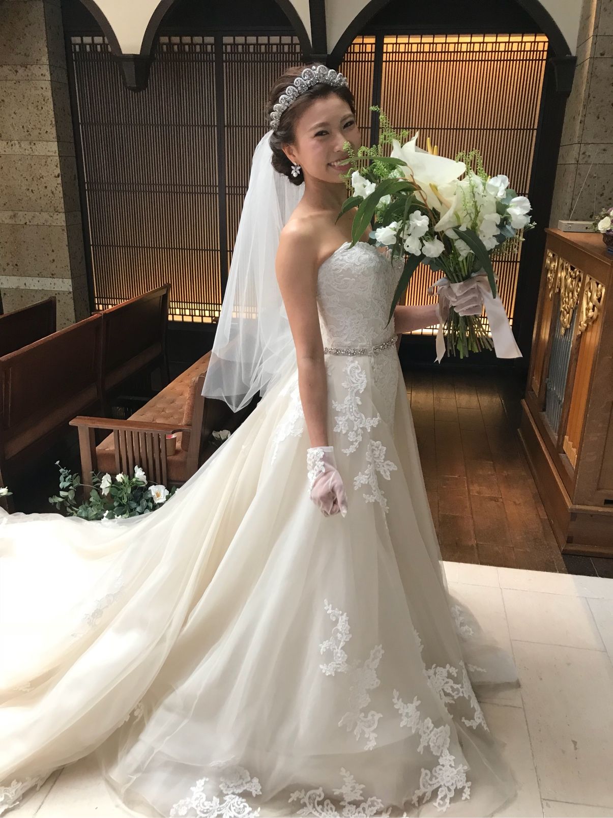 シンプルなマーメイドドレスに、オーバースカートが付いているデザインを選び、挙式と披露宴でイメージの変化を楽しめました!