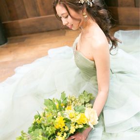 ウエスト周りのホースヘアーのデザインや、くすみグリーンが自分のパーソナルカラーともマッチしていたので、試着をさせてもらっていちばんビビッと来たものを❤️春らしいグリーンで季節感を取り入れたのもポイントです🌿