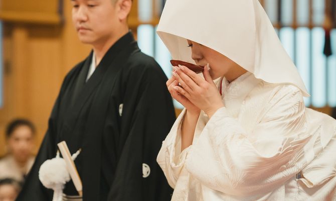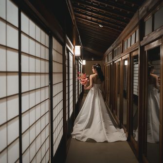 海外在住で外国人のゲストも多く、また私たちのルーツである日本の文化を表せる場所で式を挙げたかったので、とにかく『和』にこだわったテーマに絞りました!場所は『神前式ができる神社』、『和室で披露宴が行える会場』という条件で探し、庭園付きのプライベートな空間が創れる桃林荘に惹かれ、ツアーの際に即決しました!明治神宮で挙式、桃林荘で披露宴という1日の流れにすることに迷いはありませんでした。