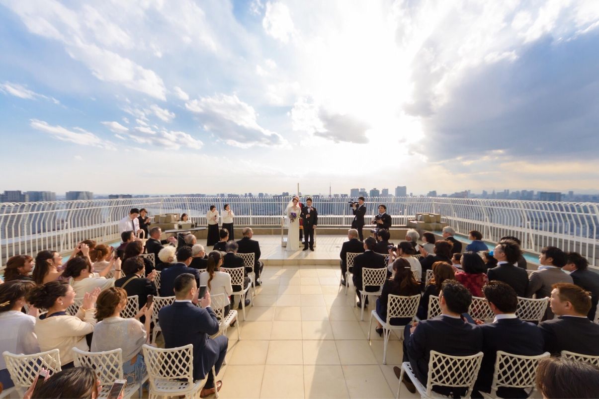 お天気にもよりますが、高層階のテラスチャペルは最高でした。