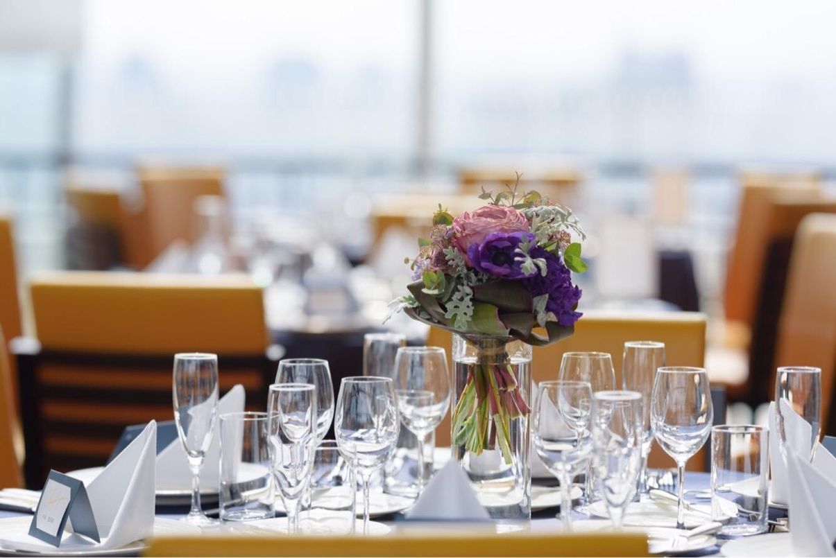 一面ガラス張りの天井高い47階でのナイトウエディングでしたので、素晴らしい夕日〜夜景が最高でした!