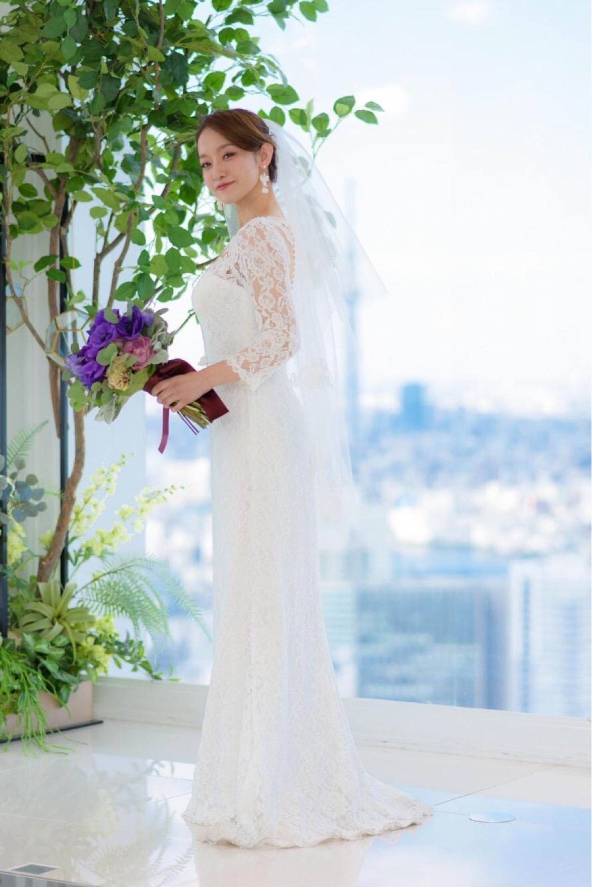 どうしてもスレンダーやマーメイドのドレスを着たかったのと、どうしてもファーストオーナーで購入したかったので。インポートのお店を何件もはしごしました。スレンダーラインと、レースのカット使いがとても好みでした。
