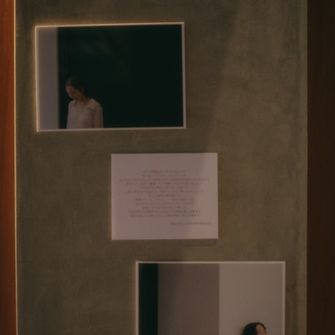入ってすぐのエントランスに写真のパネルを吊るし、壁に写真のパネルを貼りました。私たちが大好きなSUPER BEAVERの歌詞を拝借して、絵に題名があるように写真にも物語を持たせてみました。