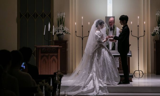 挙式はかっちりと厳かに、