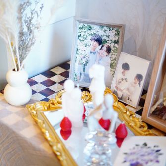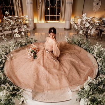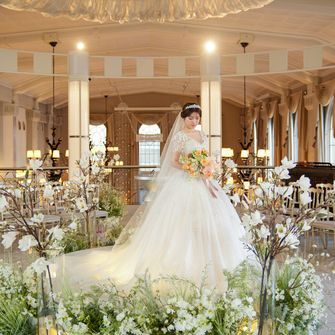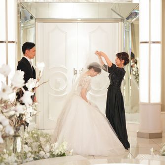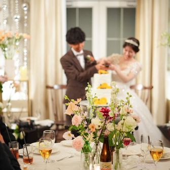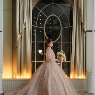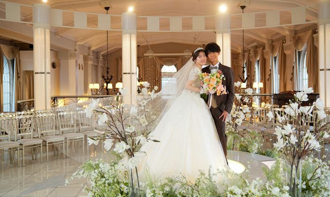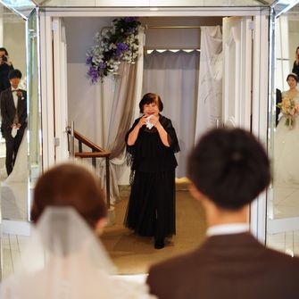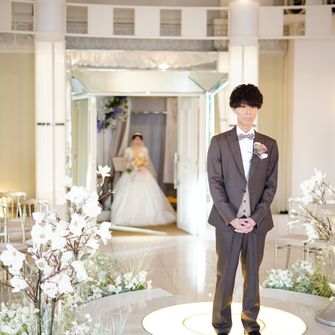 はっきりしたコンセプトは決めていませんでしたが「ゲストに協力してもらいながら、感謝の気持ちを伝える」ことを意識して、計画しました。ゲストにはウェディングキャンバスやダーズンフラワー、誓いの言葉のお手伝いをしていただいています。アルモニー ビアンの、他の会場にはない円形で真っ白な空間のチャペルは見学に行く前から憧れていて、決め手となりました。