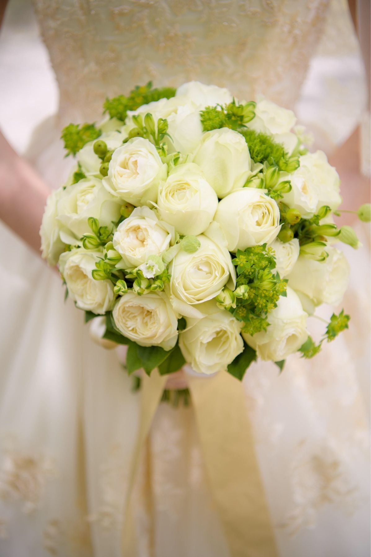 ホワイト、グリーンは主に挙式のブーケや装花に、