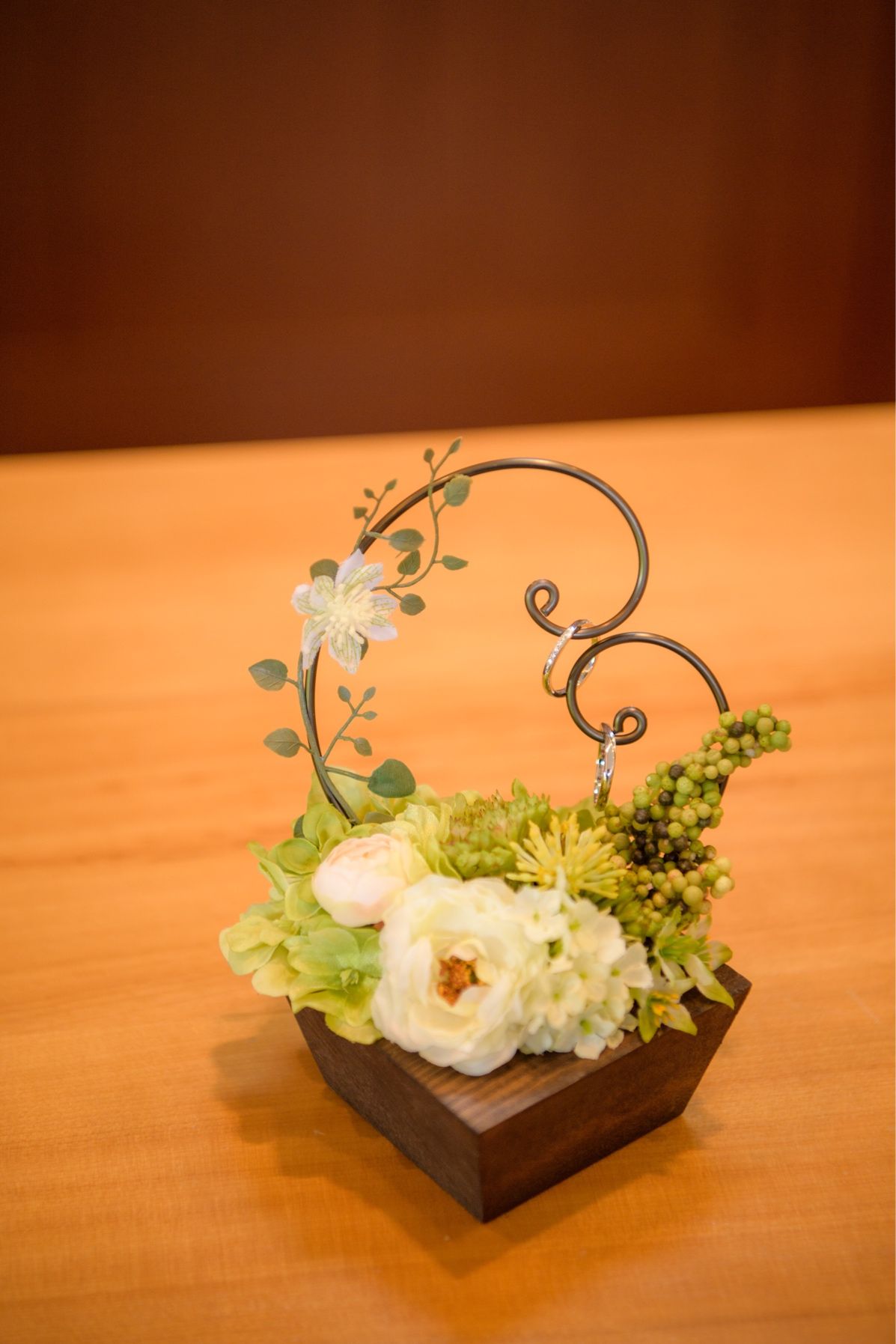 挙式はティアラ、食事会はプリザーブドフラワーでした。