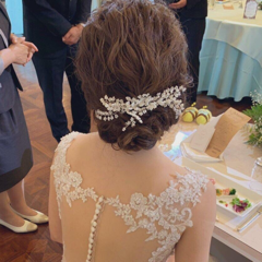 挙式と披露宴はアップスタイルにして、背中を見せるスタイルにしました。