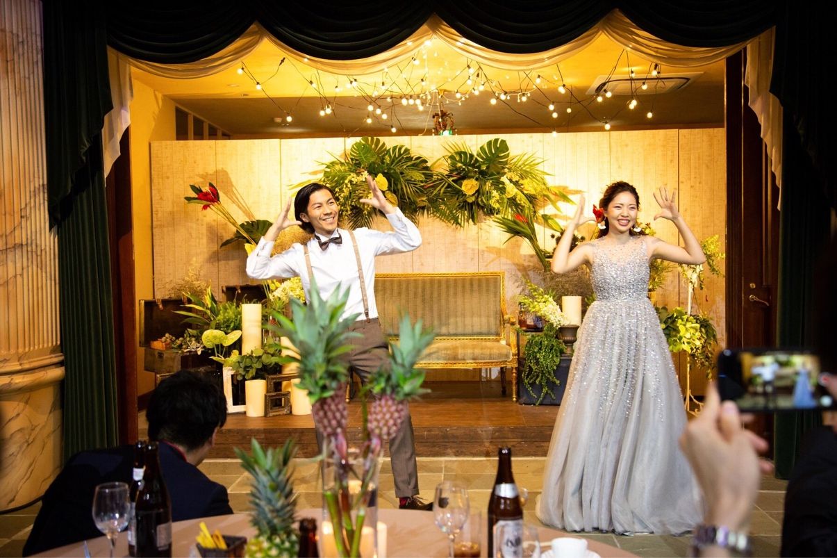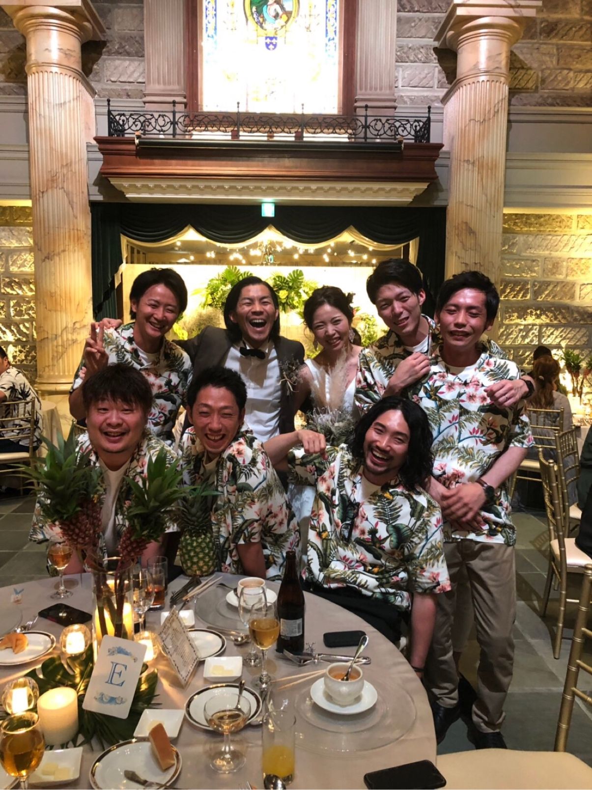 サプライズで男性ゲストがみんなアロハシャツで来てくれました! しかもテーブルごとに柄が違う! 凄い!と感動しました。 雰囲気作りを盛り上げてくれました。 感謝ですね。