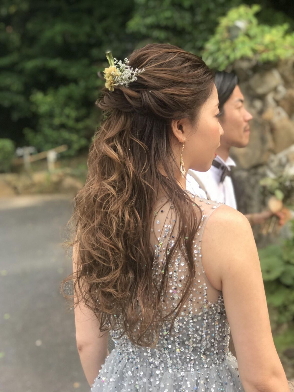 ブーケに合わせたドライフラワーをヘッドアクセサリーにしました。