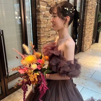 昔から秋の雰囲気が好きでテラコッタカラーやブラウン、ゴールドといった秋カラーをテーマにウェルカムスペースや装花に纏わせています。