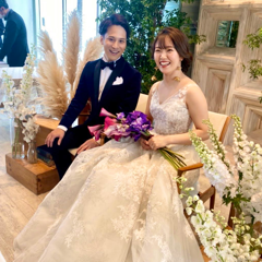 挙式でゲスト全員と歌を歌ったり、コンフェッティシャワーやゴムパッチンプルズをし、みんなと楽しめる結婚式を目指しました。ゲストにお洒落な方が多いので、ナチュラルだけど華やかな披露宴になるようにしました𖧷